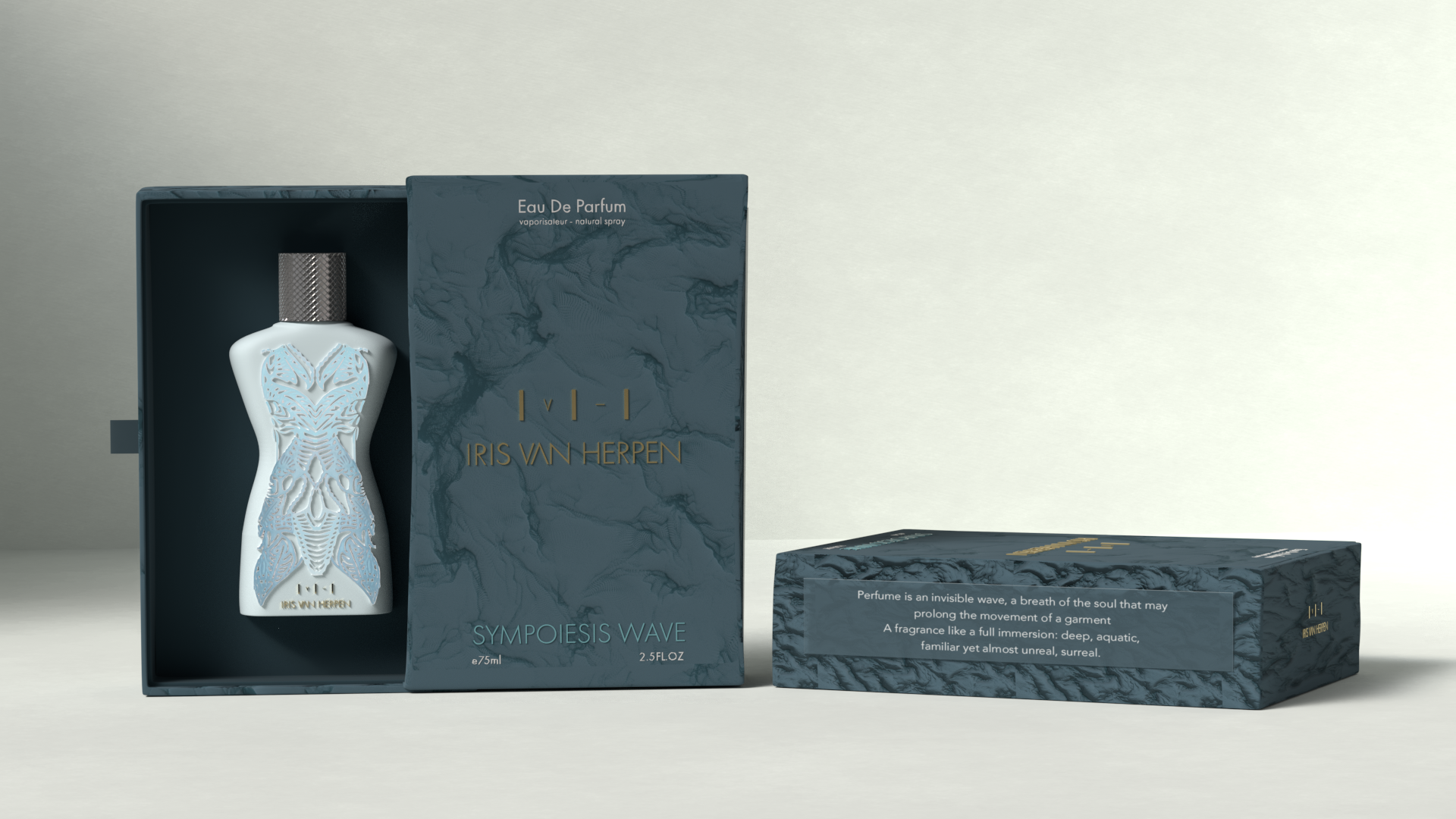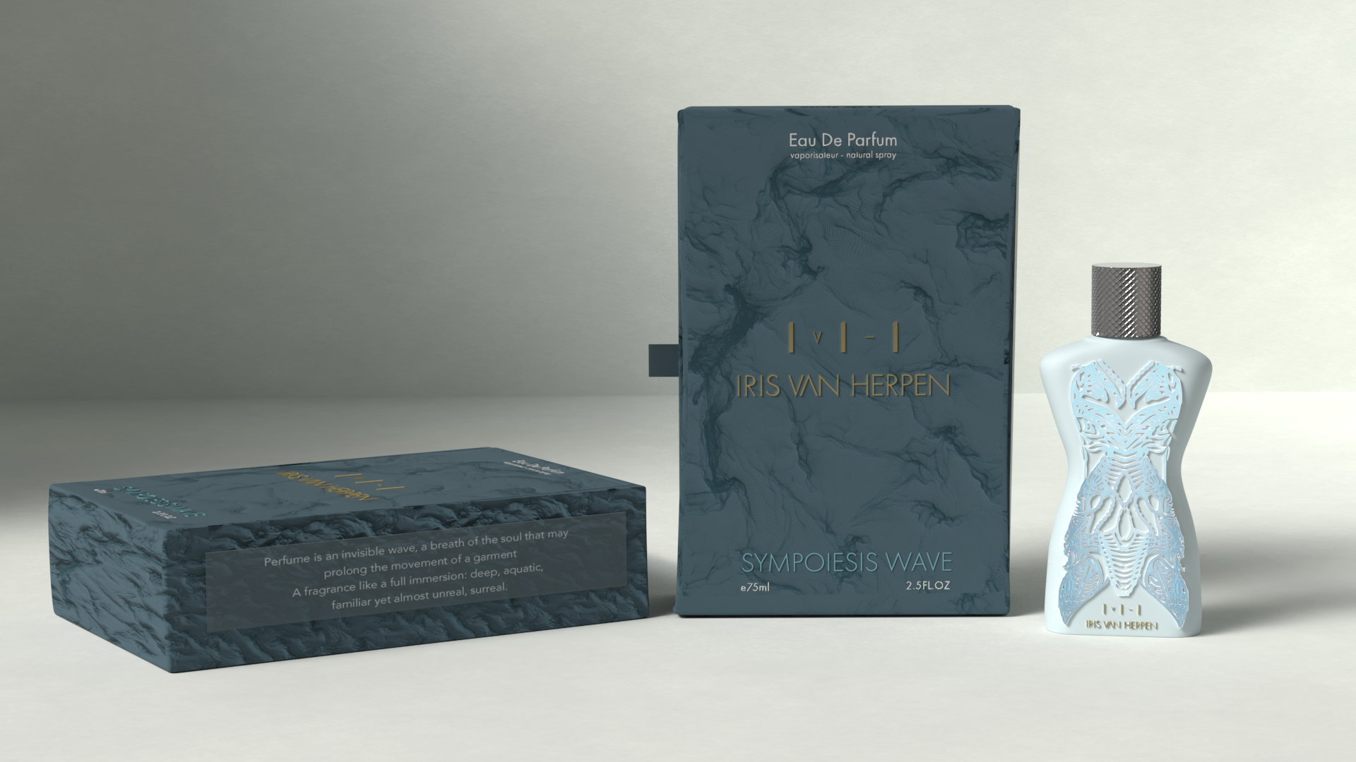 Perfume is an invisible wave, a breath of the soul that may prolong the movement of a garment. A fragrance like a full immersion: deep, aquatic, familiar yet almost unreal, surreal.